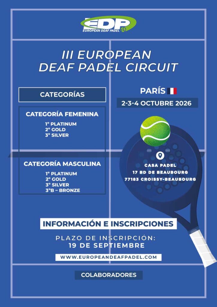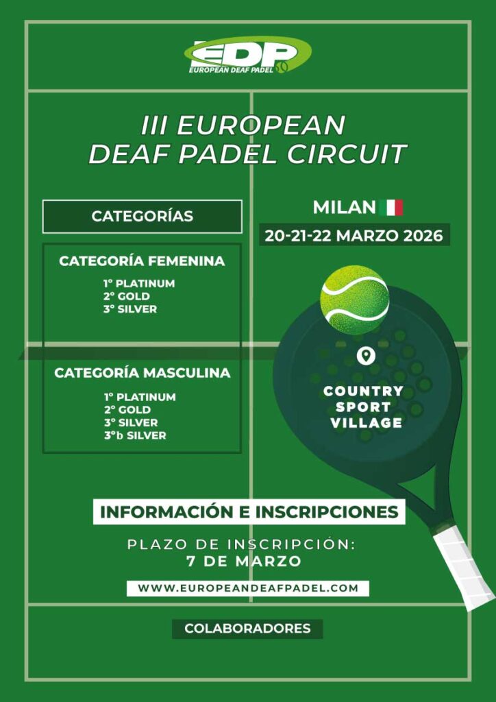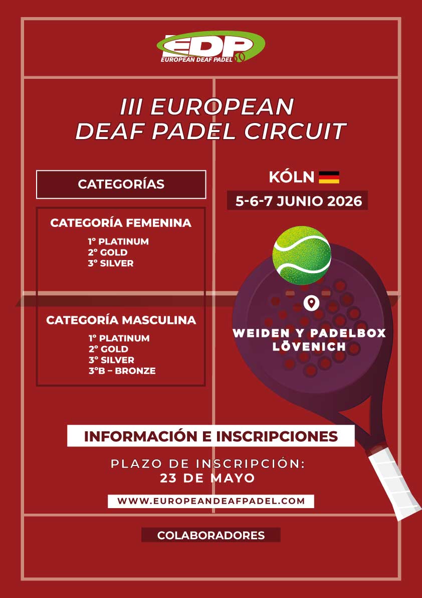 Del 5 al 7 de Junio, Kóln acoge una nueva edición de European Deaf Padel, un encuentro donde el pádel para personas sordas sigue creciendo en un entorno inclusivo y competitivo.