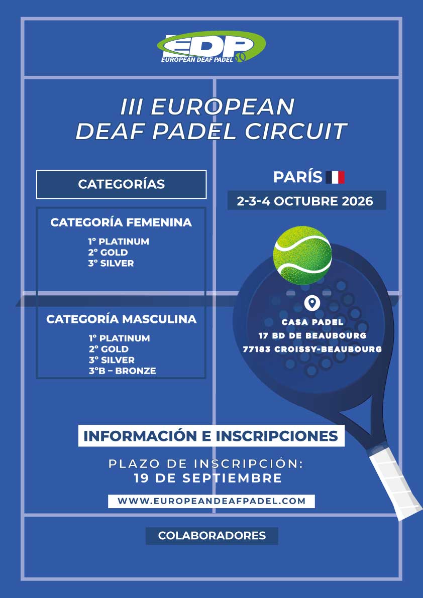 El III European Deaf Padel Circuit está formado por cuatro pruebas internacionales que impulsan el crecimiento del pádel para personas sordas en Europa.